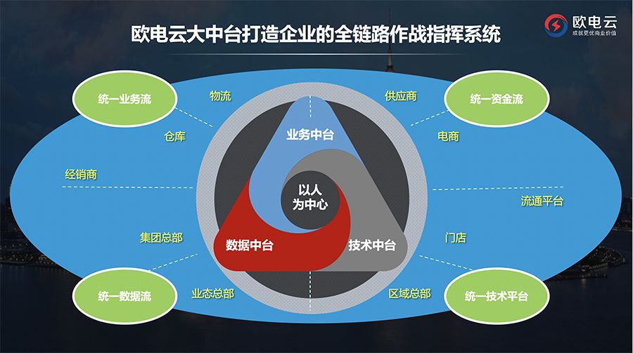 欧电云是国内领先的新零售全渠道商业协同解决方案服务商。以人为中心基于大中台理念使架构、数据、业务一体化,实现社会化资源全渠道、多业态的智慧协同。 将企业前端业务与后端管理全面整合,可打通B2B、B2C、B2B2C、O+O等业务场景,让数据流通更即时、商业决策更畅通、成就更优商业价值。
